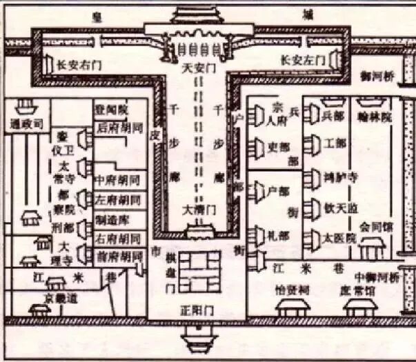 天安门广场在明清时期,只是紫禁城正门外一个封闭的T形宫廷广场,东、西、南三面都用围墙围起,普通百姓不可入内,只有举办重大庆典和向全国发布政令时才可使用,代表着皇权的威严。