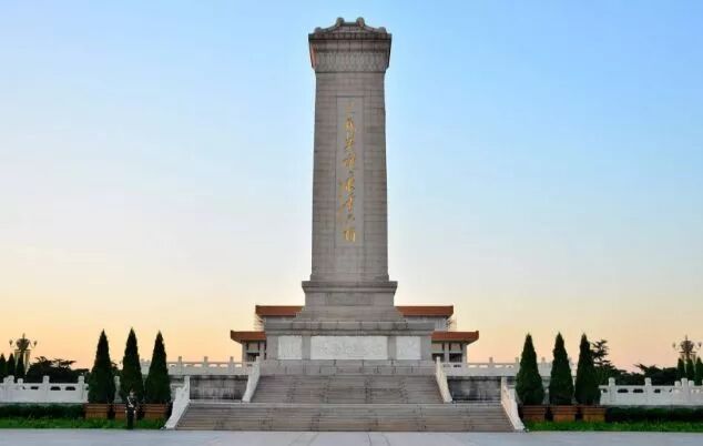 人民英雄纪念碑1949年9月30日在天安门广场奠基,1952年8月1日开工,1958年4月22日建成。人民英雄纪念碑通高37.94米,正面(北面)碑心是一整块石材,长14.7米、宽2.9米、厚1米、重60.23吨,镌刻着“人民英雄永垂不朽”八个金箔大字。背面碑心由7块石材构成,内容为150字小楷字体碑文。