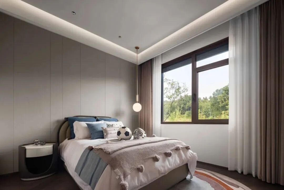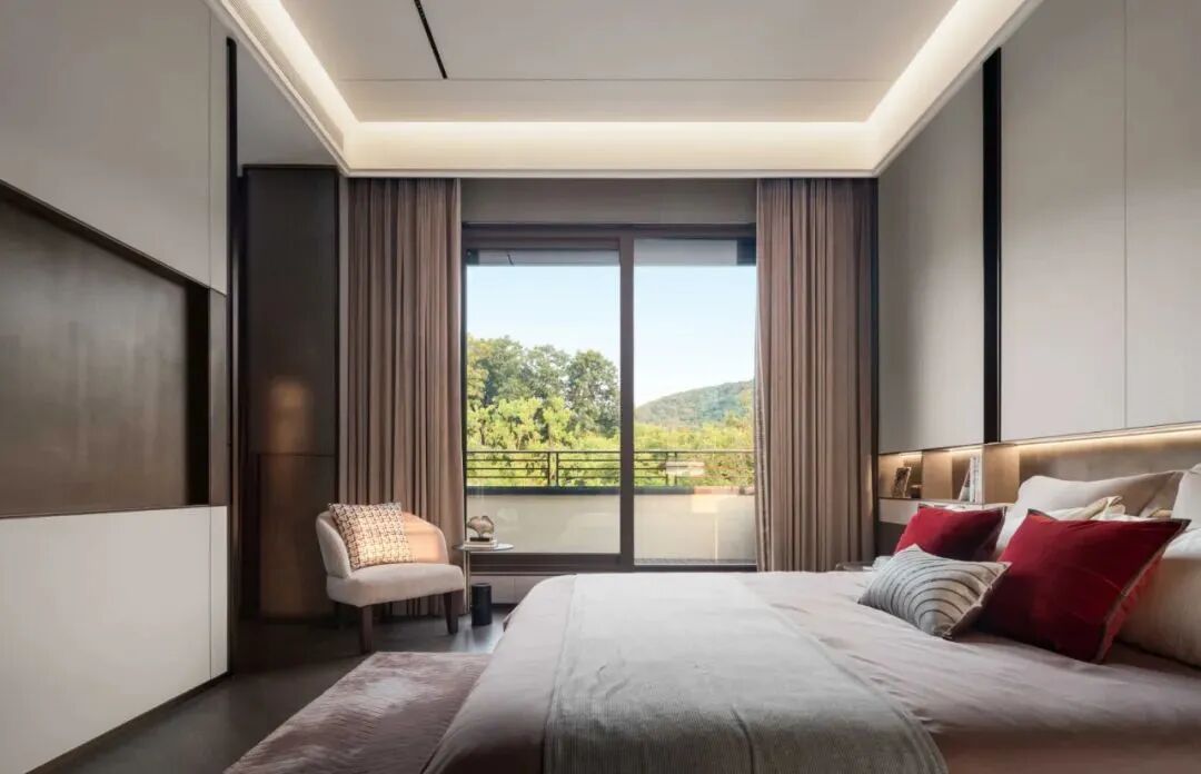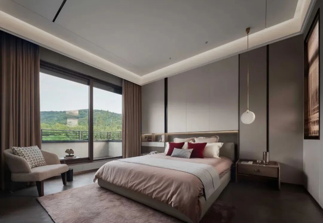 脱离了钢筋混泥土的嘈杂,主卧的情感归于静谧,闲适与安宁缓慢充盈心灵,空间的开开合合与半遮半掩,与生活成趣。