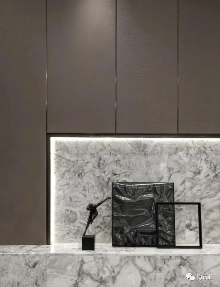 用天然的大理石作为背景墙搭配黑石金属框架,时尚简约,形成强烈的对比。