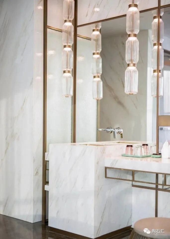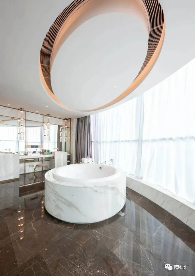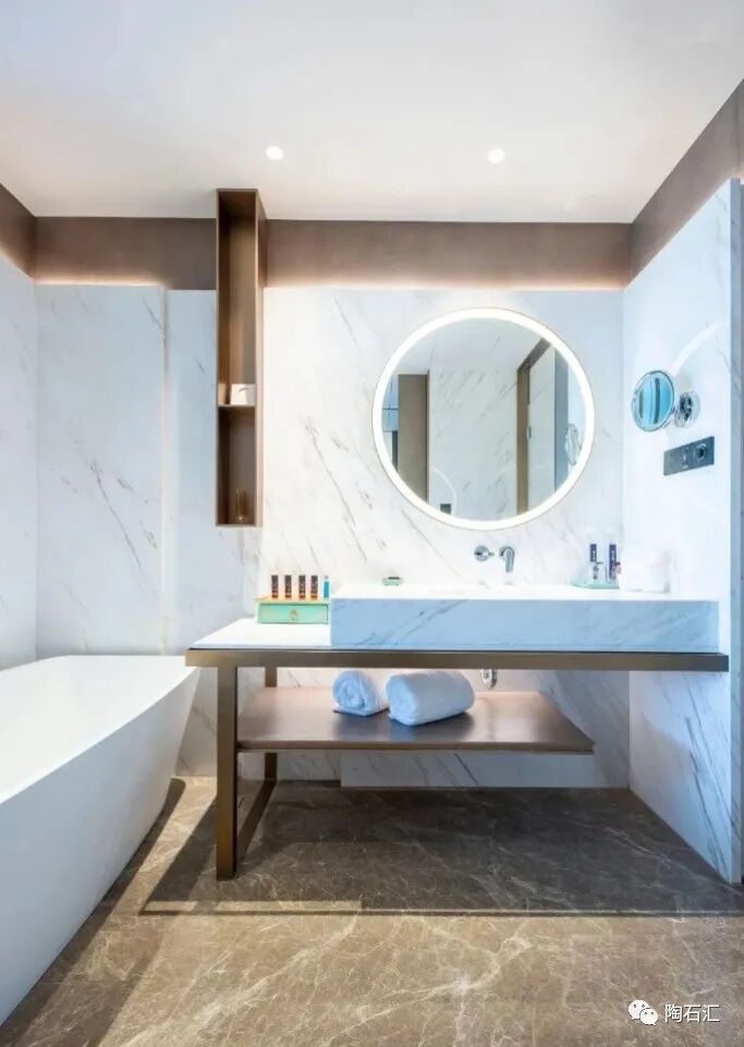 说到浴室,高端的星级酒店浴室通常都是需要用上天然石材的,天然的纹路,剔透的质感,多种多样的大理石切割方式,奢华至极,使人淋浴其中,享受一种极致的舒泰。
