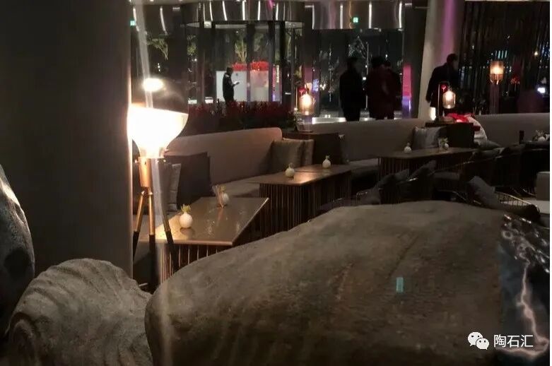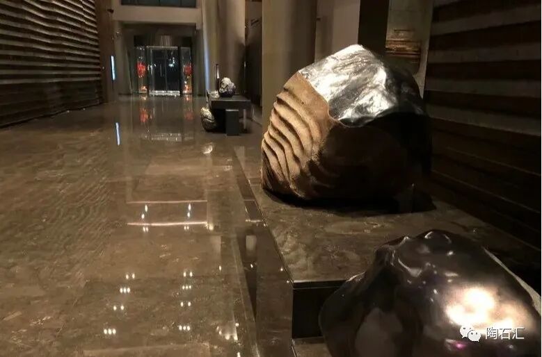 大堂以香槟金黑色的主打色,高贵奢华,摆设的许多巨型石头,展现的不仅是艺术更是向人们讲述着它的身前身后事。
