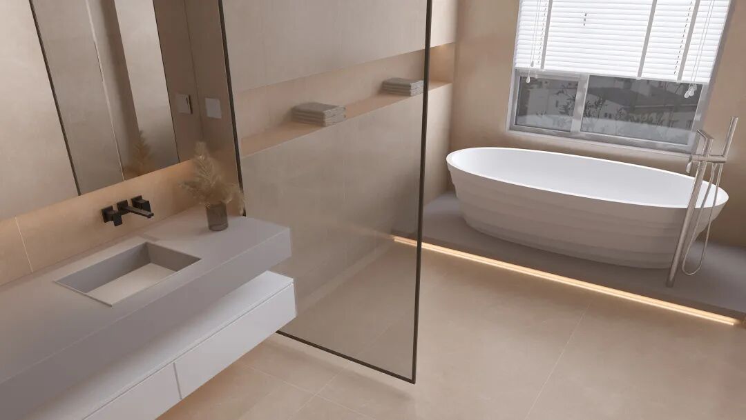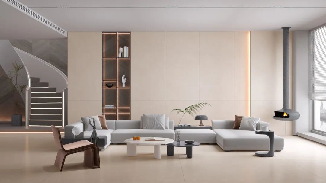墙地一体的微水泥奶油色瓷砖