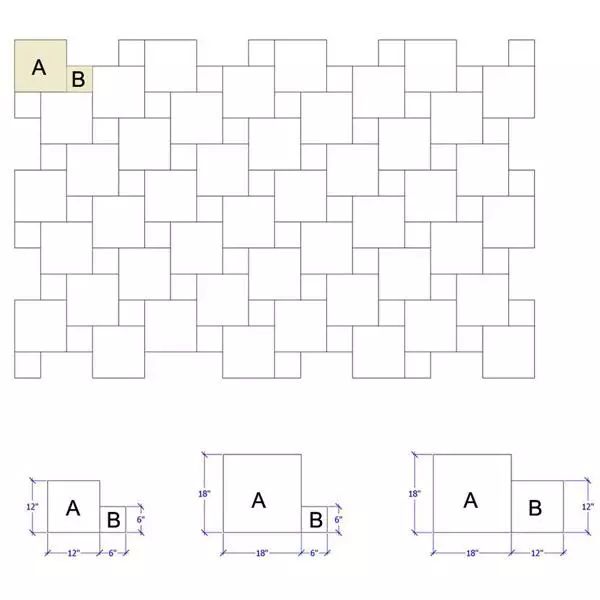 看着虽然简单,但是在铺贴的时候大小砖的尺寸却有三种搭配方式。