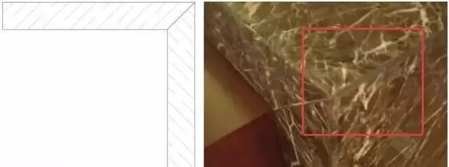 “现在网络上很多课程在讲到石材阳角收口时,千篇一律的将用于空间构造中的「竖向阳角收口」直接应用在石材台面的「横向阳角收口」上。”就如下图所示: