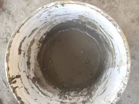 底层粉刷材料使用WL-300干粉界面剂和水按配合比1:0.25进行搅拌,制成高强度聚合物砂浆。一次投料量应在规定的时间内用完。初凝后料浆不得再次加水搅拌使用。面层滚刷拉毛用的是高强度胶泥,是使用聚乙烯醇和水按配合比1:23熬制成胶浆,再把胶浆和水泥(普通硅酸盐水泥)按配合比1:1.1倒入桶中进行搅拌,使料浆达到合适的稠度,静置5分钟成,视其和易性。