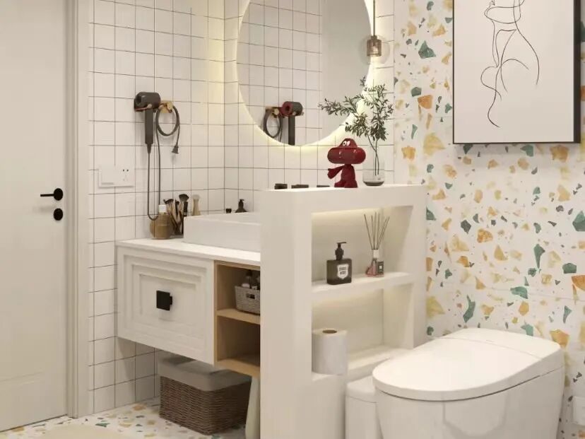 同时,建议卫生间的水电管道都走顶,因为出现问题时能够及时发现,相比于走地维修来说更加方便,不用敲地砖。