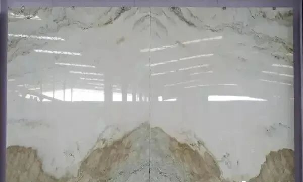 大理石对拼常见的有双拼和四拼、八拼甚至更多,两块大板可能可以拼出几十种方案。大理石对纹拼贴,把相同纹理的大理石对称拼接,有着强烈的张力与表现力,轻松营造奢华的氛围。对纹镜像设计的大板需要正反面磨光进行拼接。