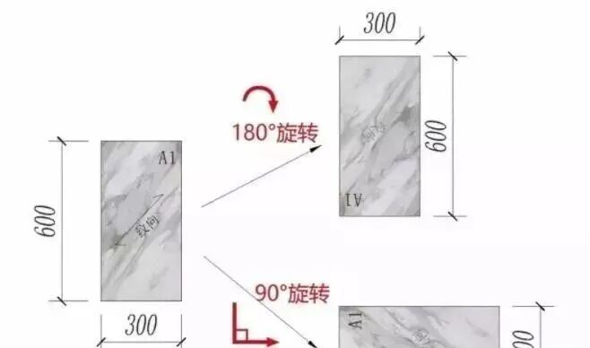 将A1编号分别旋转180°和90°,180°的纹理方向是一样的。