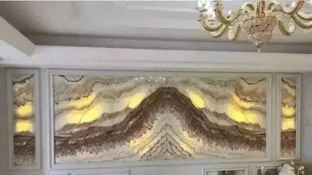 石材对拼通常使用纹理明显的大理石或者玉石、山水画等,可以拼出大气磅礴的纹理或者图案,让人一见倾心。
