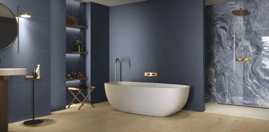 瓷砖的简单色彩,叠加设计可以让空间更丰富