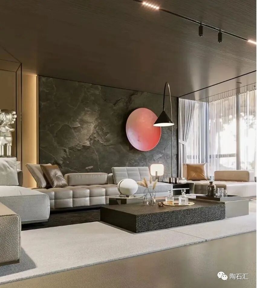 或是与家具相搭配,采用地浅墙中家具深的搭配,可以显得空间层次感分明。