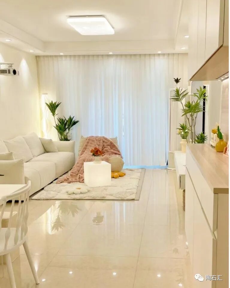 除此之外,玻化砖明亮光洁,在客厅铺装后显得大方漂亮,而且价格适中,易于打扫清洁。