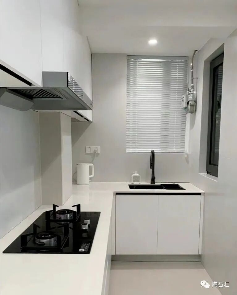 地面:通体砖的表面不上釉,而且正面和反面的材质和色泽一致,防滑性好。厨房地面有水的情况下不会容易摔倒。而且通体砖的色彩通常比较素雅、淡色,适合厨房这种空间小容易压抑的地方。