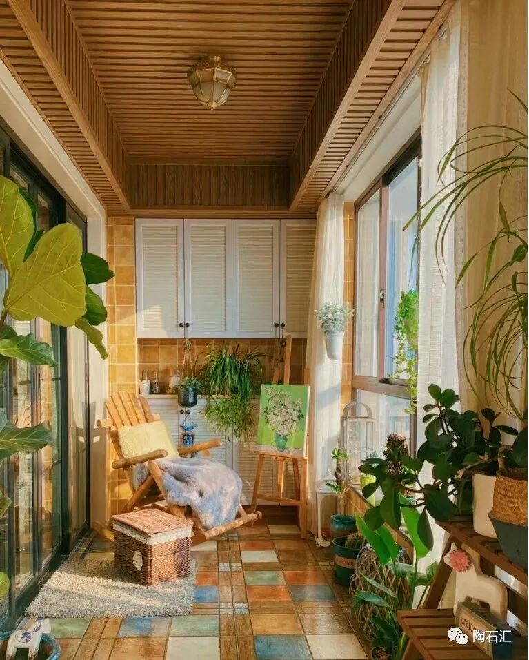 哑光防滑、色调偏深、规格偏小的传统仿古砖有着独特的厚重感,适合打造低调沉稳的阳台风格。淡雅色系、规格更多样化的现代仿古砖,则更加低调雅致。
