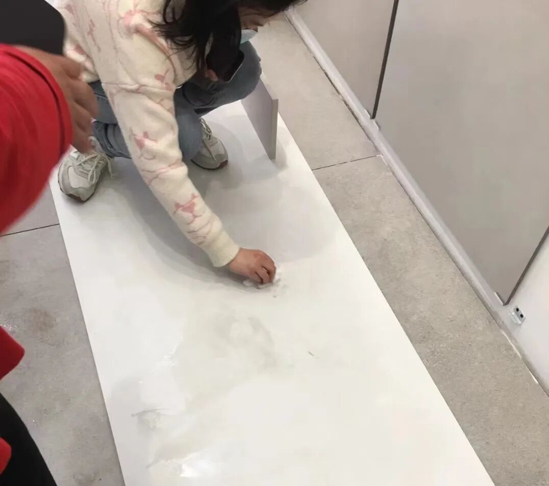 有些销售在给做演示的时候,笔划过后就开擦,这种测试并不可取,原因可能有两种:1、他可能用的是水性笔,这样的笔写上是非常好擦的,根本起不到测试的效果。2、写完立马拿湿抹布擦,根本不给笔印干燥的时间,为什么?生怕干了擦不掉。所以,自己带笔试一试,更放心。另外,很多仿古砖,表面是坑洼的,确实容易藏污纳垢,不勤快的人尽量还是别选了。