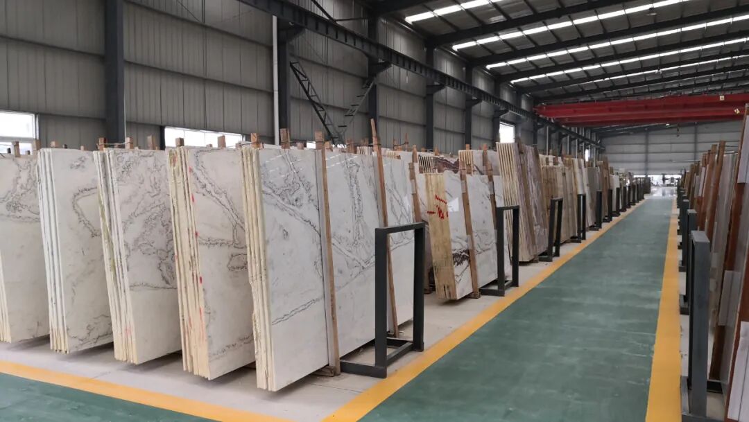 从矿山开采下来的石材,通常为整块荒料,荒料需要切割成一片一片的,我们叫大板。