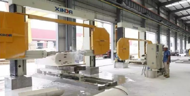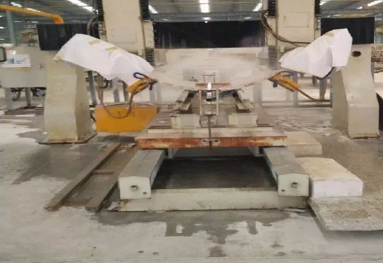 下料是异型石材加工的第一步,首先选择质地优良、尺寸合适的荒料进行下料。