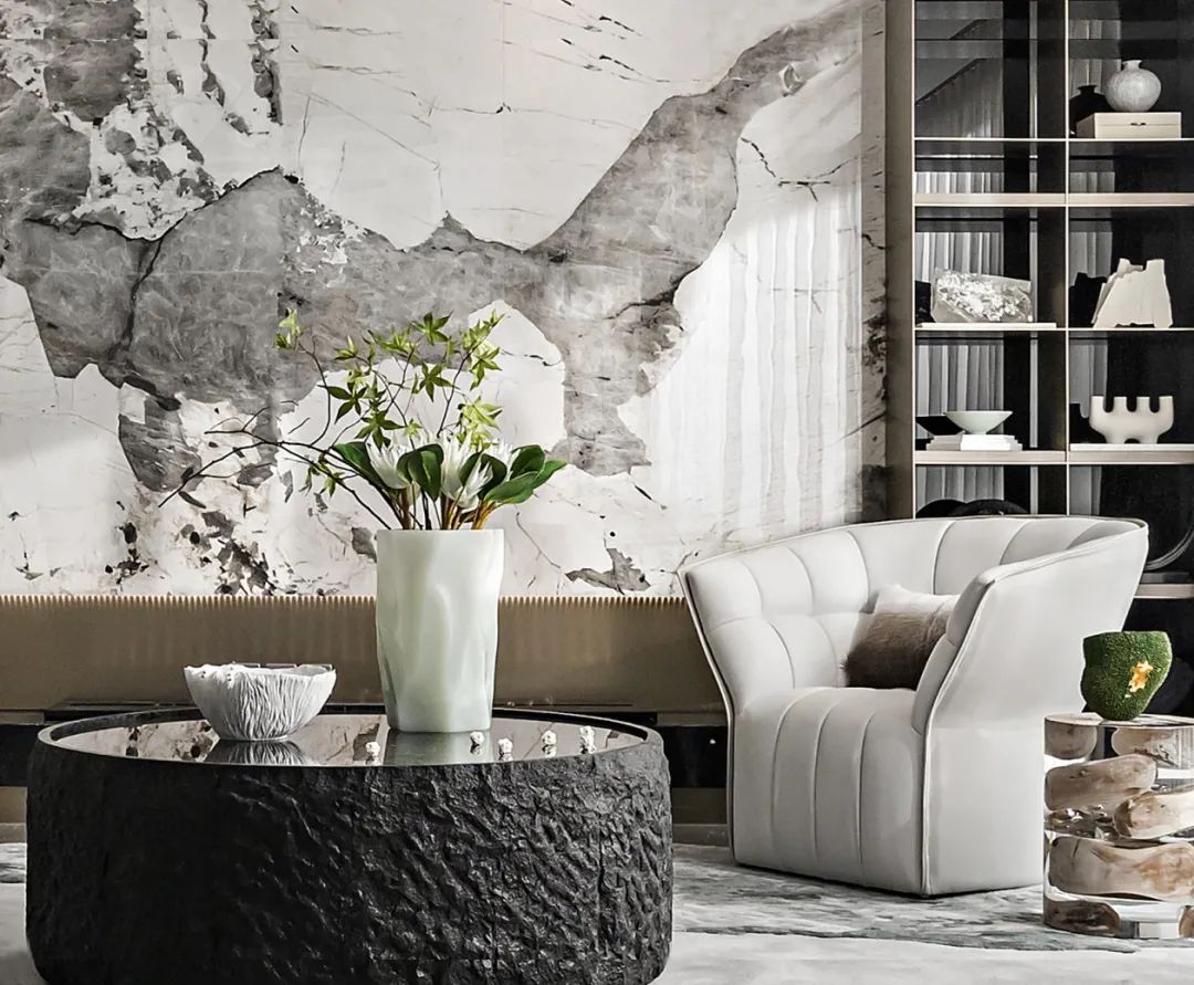 简约风格的石材,在很大程度上,也刚好符合现代人的这些追求,无论是时尚又奢华的简欧风格,还是大气又内敛的新中式风格,从地面、墙面、楼梯到桌面、装饰,石材正在为更多室内设计师所用。