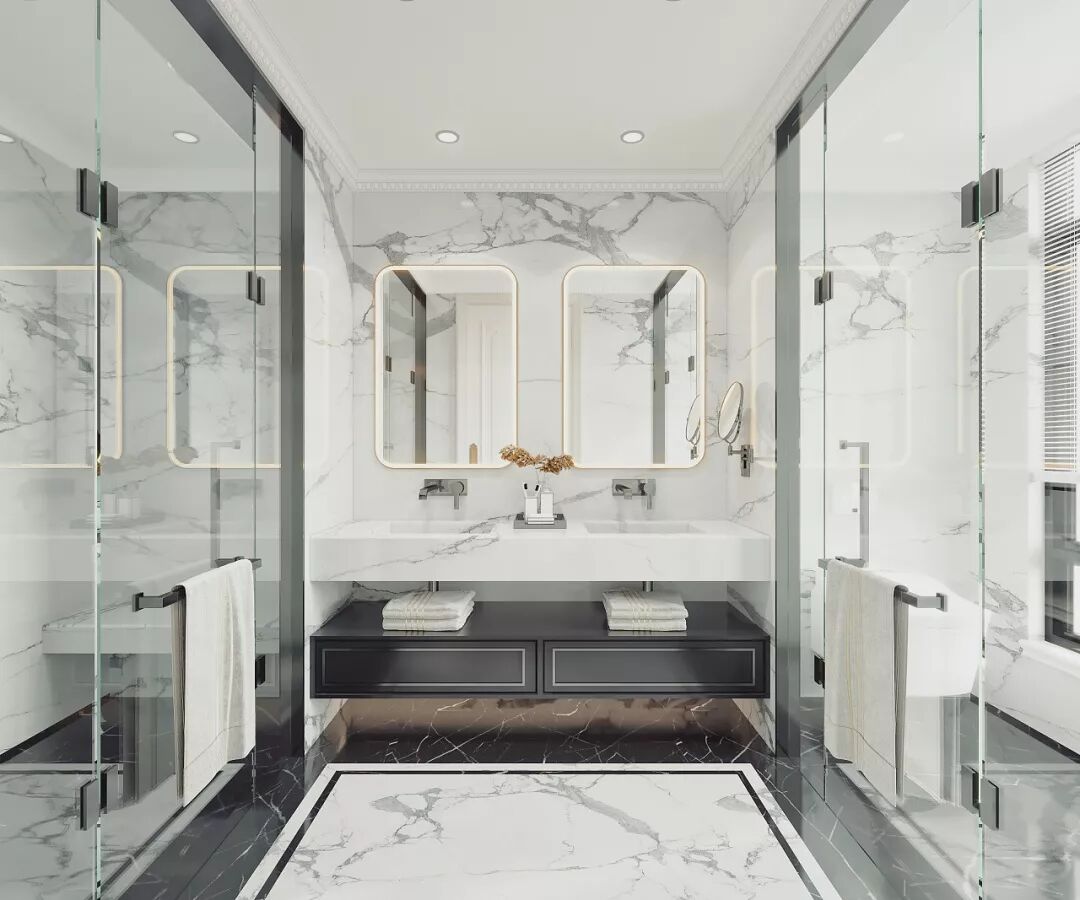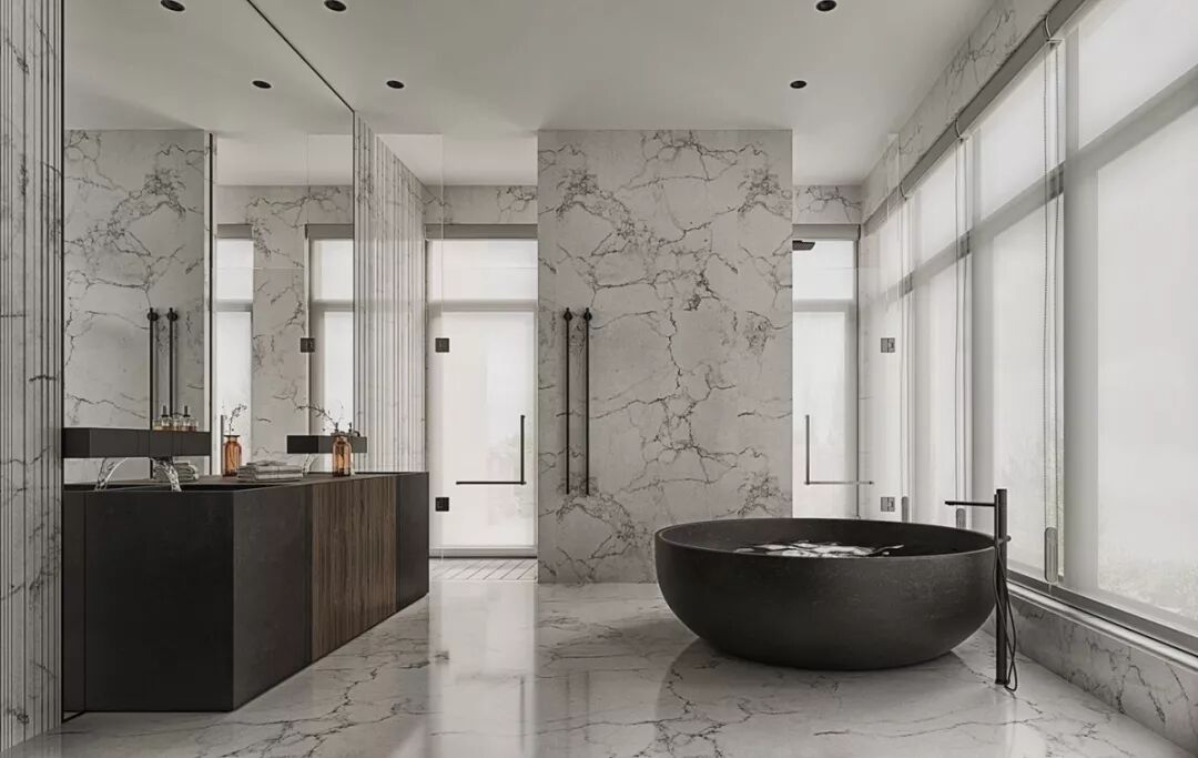 卫浴使用的大理石应当选用材质较硬、密度较大的,尽量避免使用材质软、吸水率高的大理石。由于卫生间和浴室特殊的环境条件,其水气多,潮湿,霉菌污垢多,而且经常接触洗涤剂等日用化学品,所以卫浴石材非常容易受到污染。