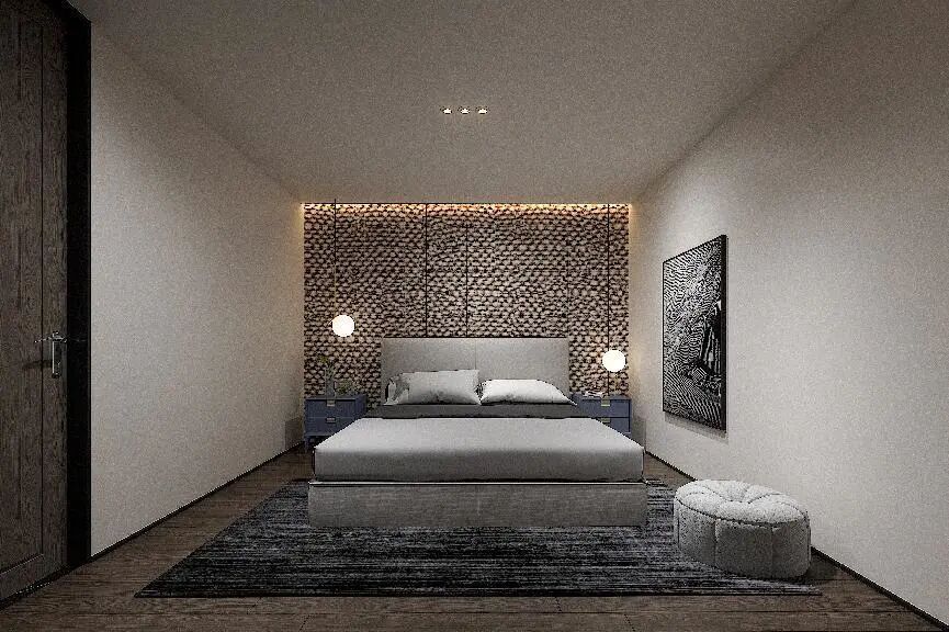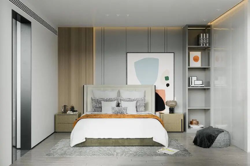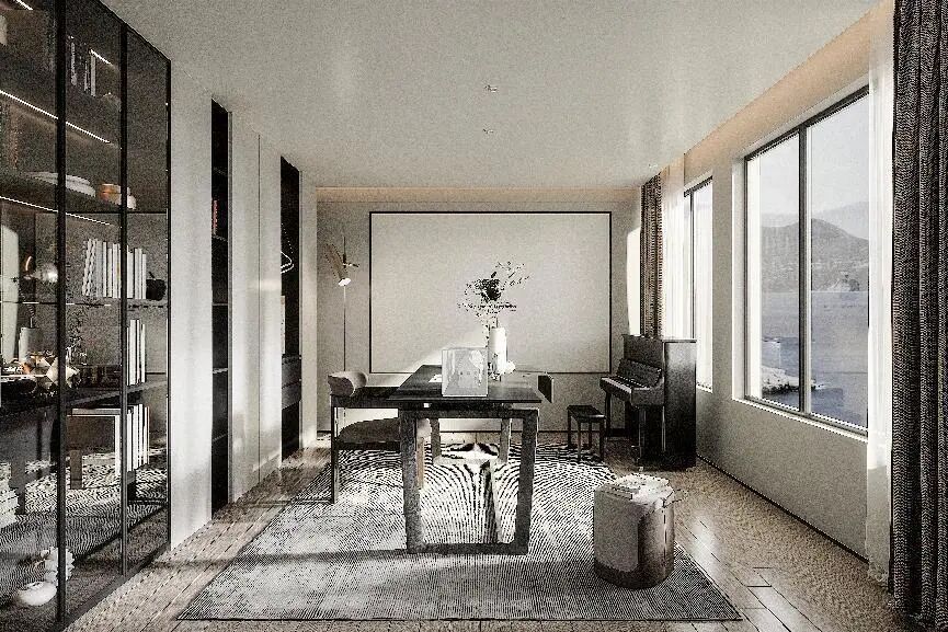 这套别墅户型整体以黑白灰为基调,加上点缀色,打破空间的沉闷感和单调,带来些许活力感。整体配色的方式不单是对简约风格的遵循,也是个性的展示。无论是色彩、造型、材质,都尽量用简约的方式呈现,避免过于花哨、华丽的家装,强调形式应更多地服务于功能。