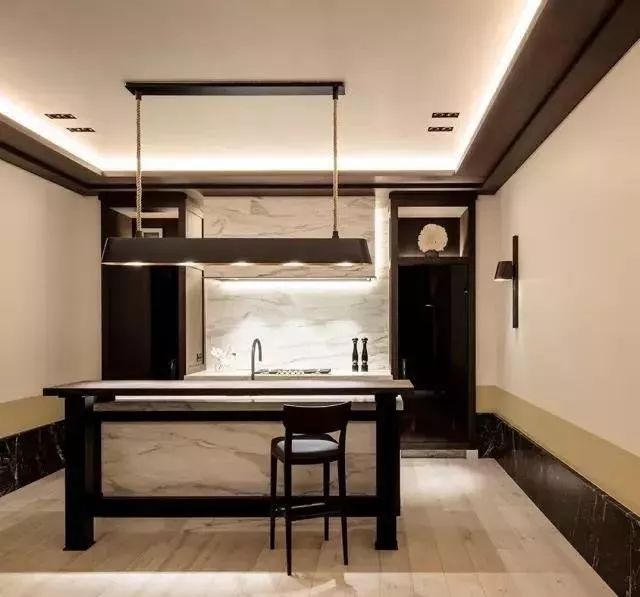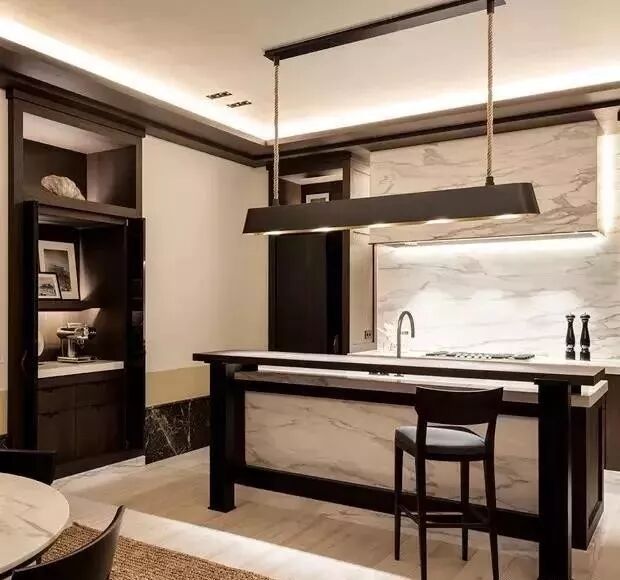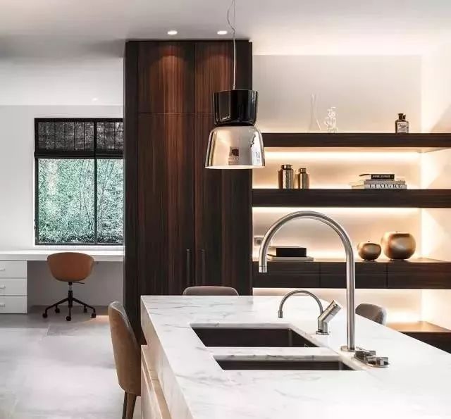名贵木质与大理石完美的比例与名贵的材料木质与大理石的结合,打造出一个高端大气的厨房简洁的装修在视觉上也是种享受。