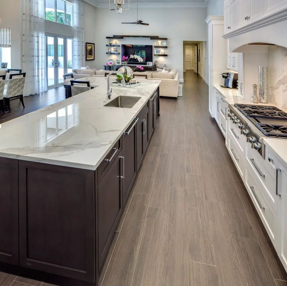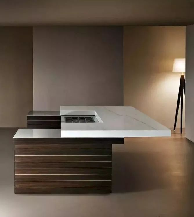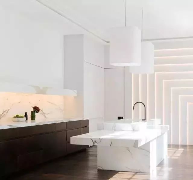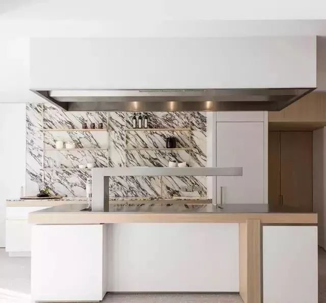大理石和木材组合采用大理石和木材组合打造的现代时尚厨房,深色的木材配以白色大理石营造出精致优雅的厨房氛围。