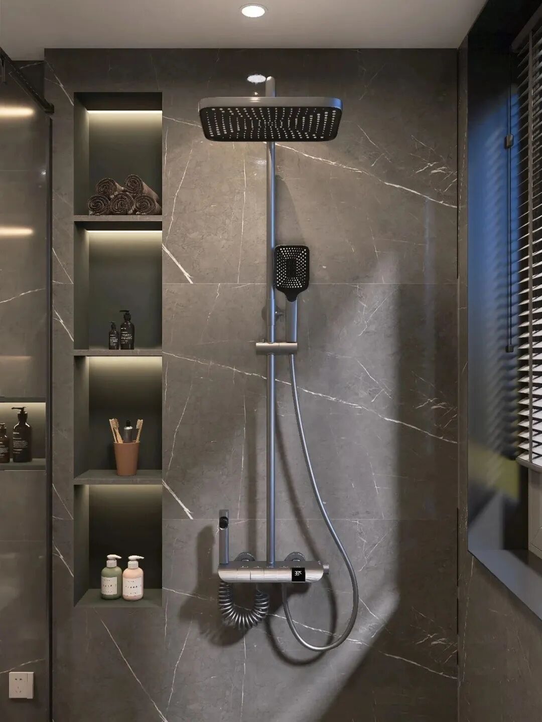 值得一提的是,有老人与孩子的家庭可以考虑使用恒温淋浴器,不仅可以快速调温恒定出水温度,还可以有智能安全锁,防止老人与孩子烫伤。