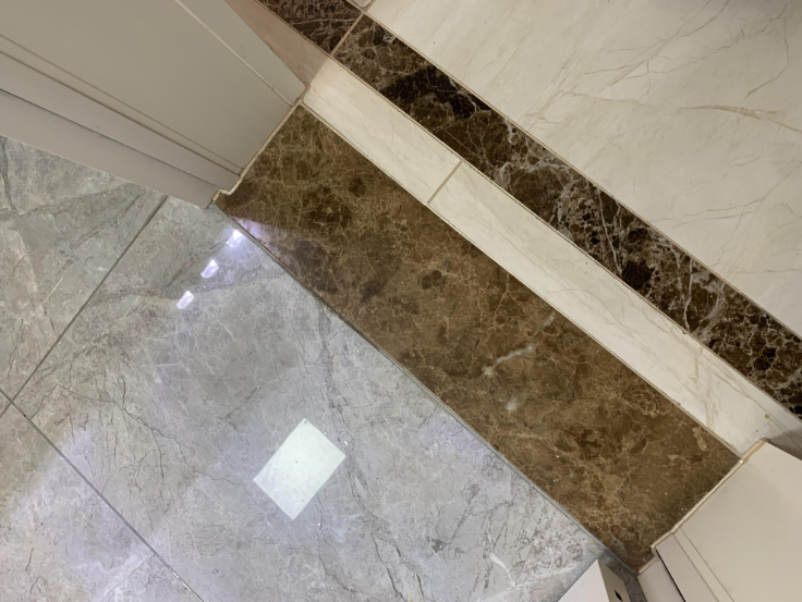 大家现在都很喜欢在卫生间里用大理石,那么门槛石可以直接和地面选择同花色的石材。像是地面用爵士白的话,门槛石直接用爵士白大理石,两者花色完全一样。