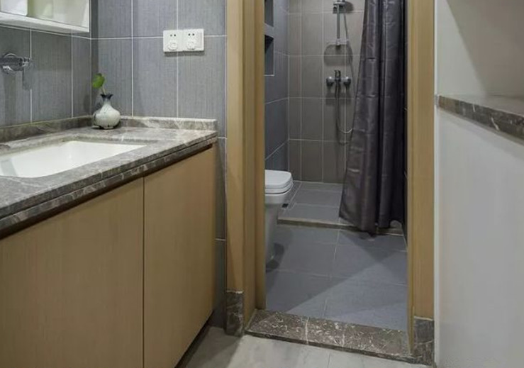 门槛石的挡水效果,主要表现在厨卫空间上。一般而言,厨卫地面为防止水流到外面,高度比其他空间都要低。可以对卫生间内的水有一定的防溢水作用。