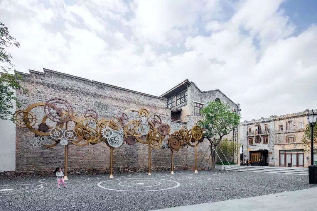 以一面墙独立安放在景区中,成为视觉焦点。
