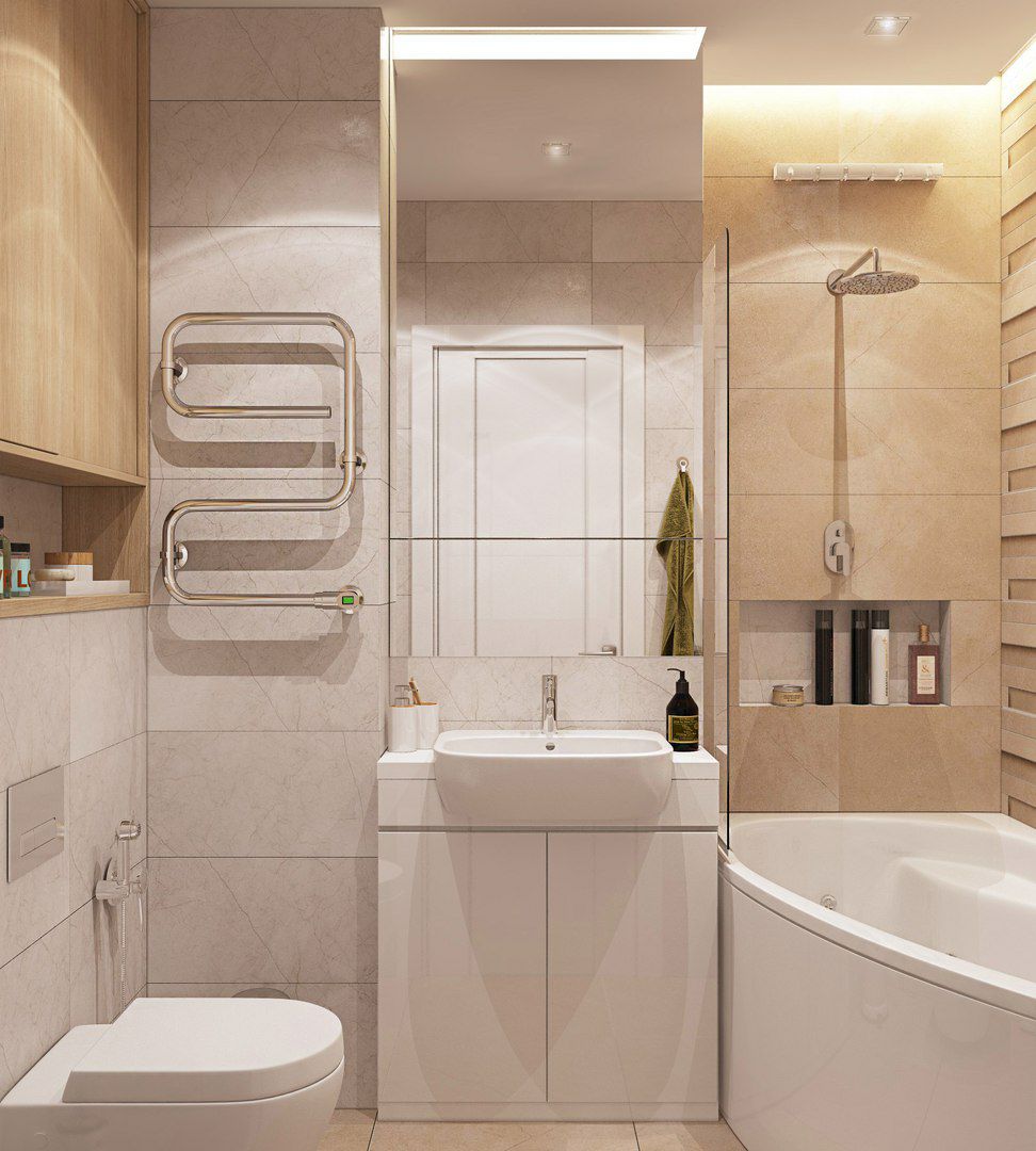 如果你不是白色的粉丝,可以通过温暖的米色,柔和的灰色甚至粉色系(粉蓝、粉红等)来营造空间的宽阔感。选择一款品位高雅的瓷砖,其余的墙面选取与之搭调的色系。整体效果宁静而温馨,不会造成视觉破裂而缩小你的空间感觉。