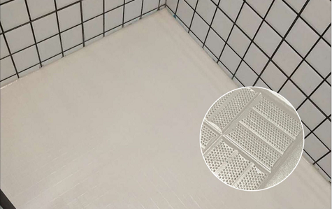 它和日本整体卫浴的地面脚感相近,具有防水防滑、抗菌、缓解冲击、吸音、不冰冷、好打理的特点,非常适合有小孩和老人的家庭使用。