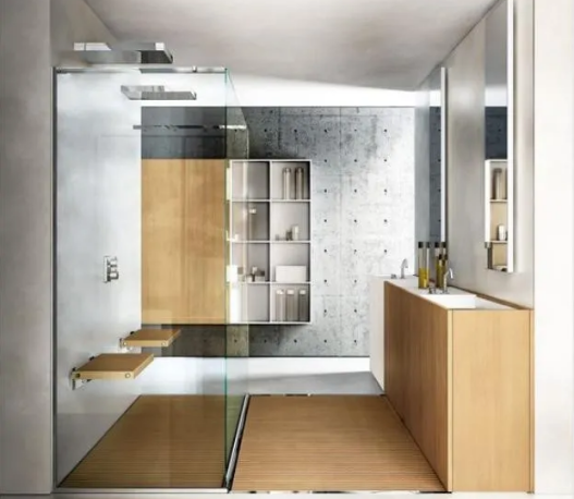 卫浴材料中应合理使用木质材料,选用卫浴间的木质材料时首要考虑其防腐性能。使用木质材料时,应选用防火板或做全混油装饰,来强化其防水功能。