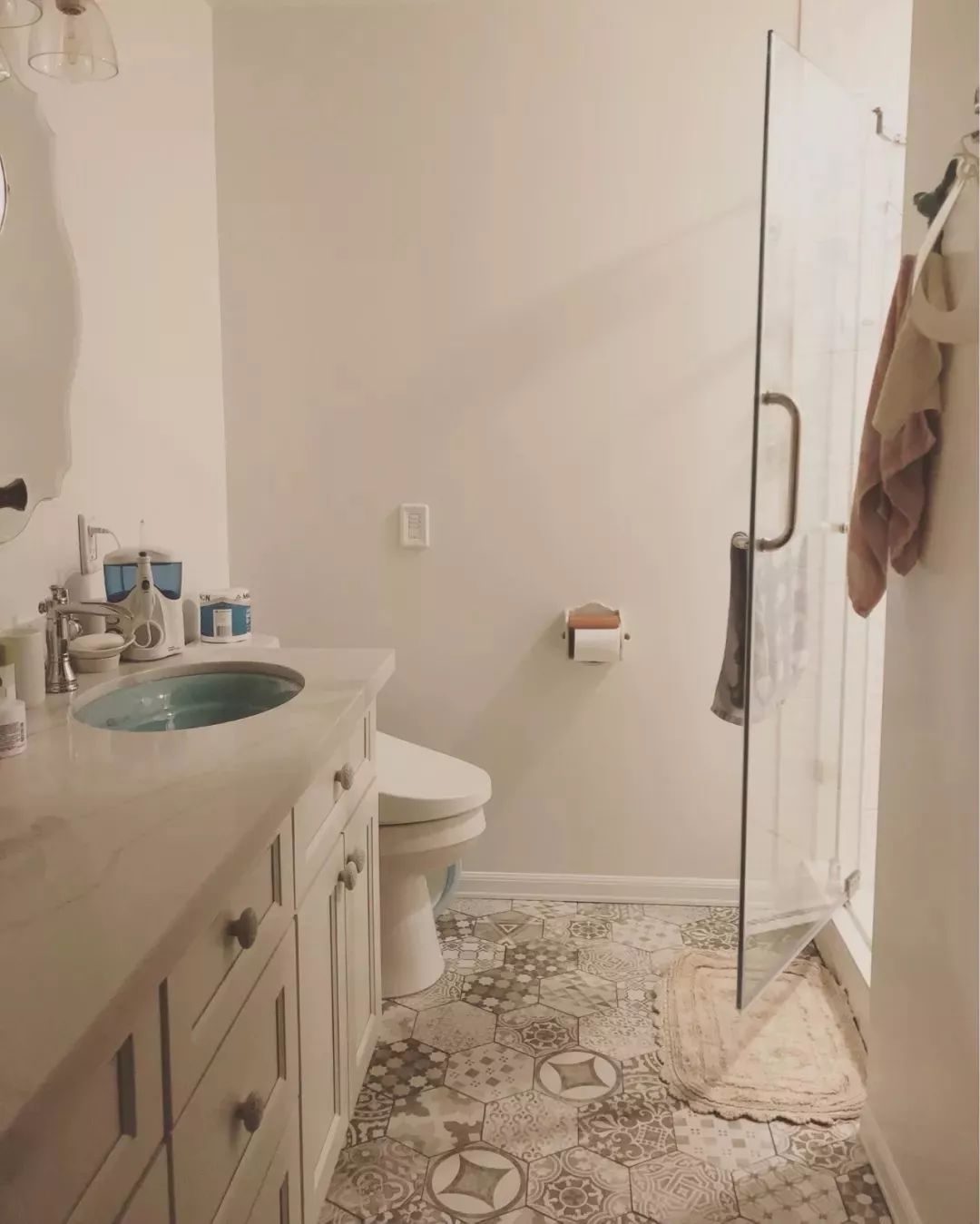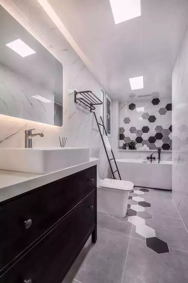 六边砖是一种比较文艺的选择,这种砖的款式、颜色、纹理比较多样,不过这种结构的施工难度较大,用于卫生间这样的小空间的话是比较适合的,效果的话当然也是很精致的。