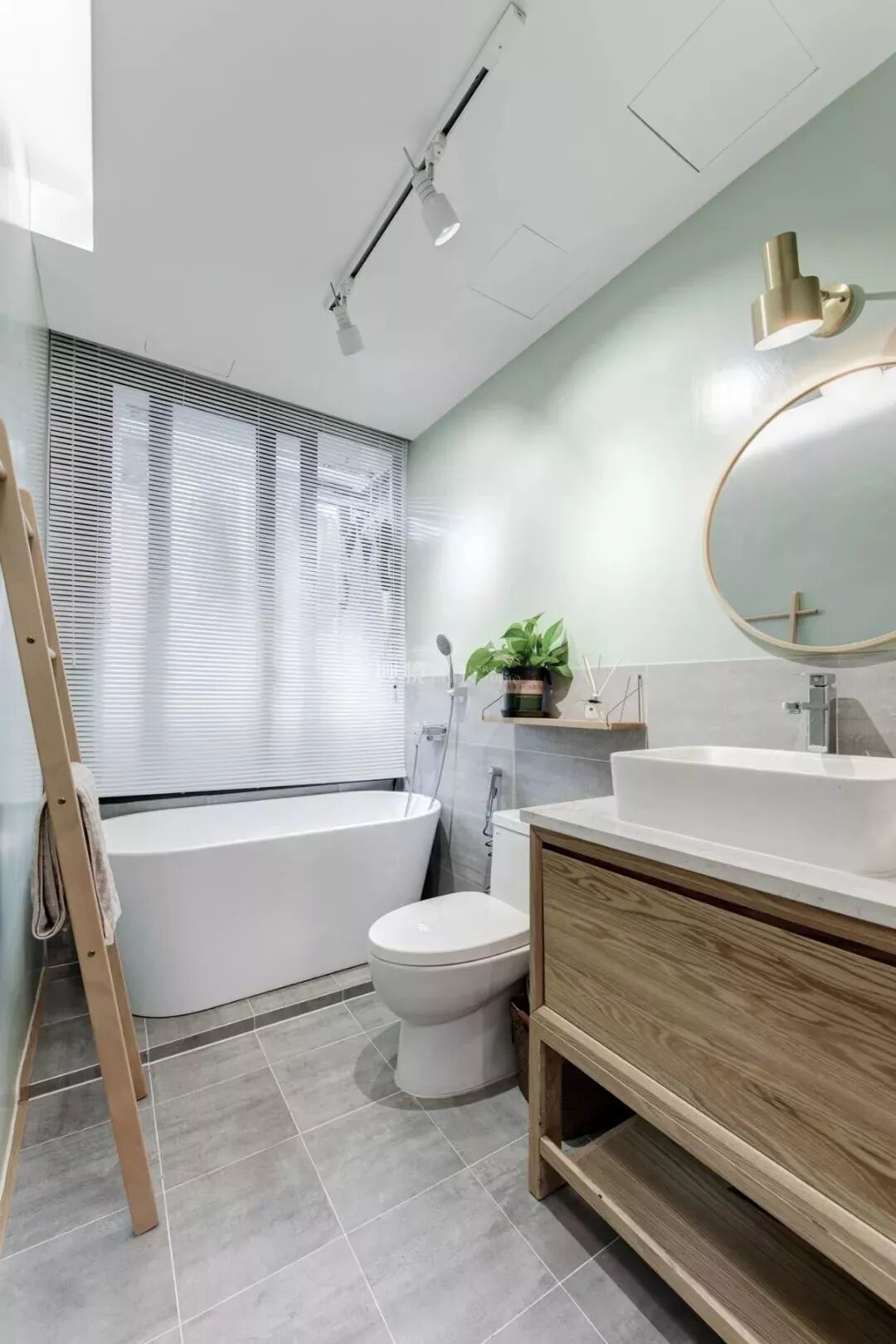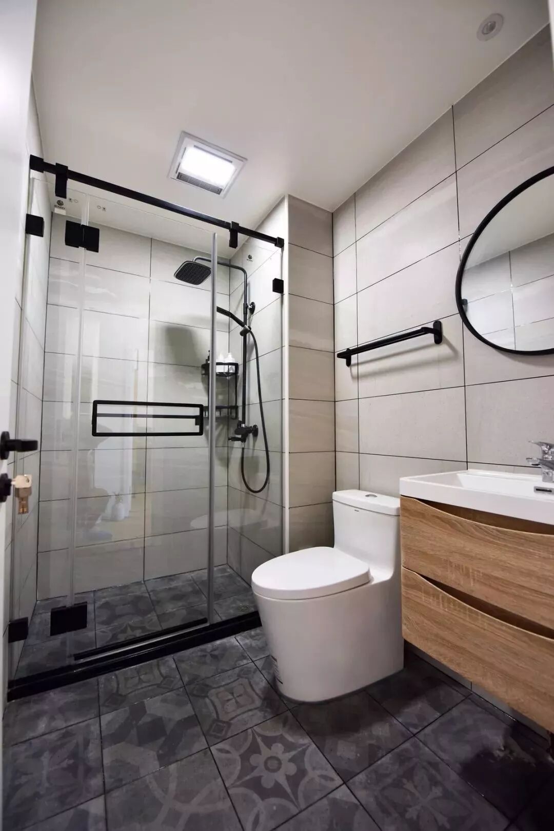 水泥灰质感的地砖,是一个非常耐脏的选择,而且这种亚光砖的防滑效果也是比较好,适合简约现代的风格搭配。
