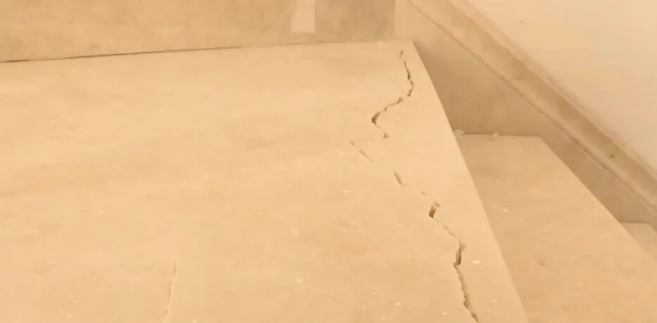 1、石材直接铺贴在钢板上,楼梯正常使用时,石材面受力不均易使钢楼梯产生振动变形,导致石材出现裂纹。