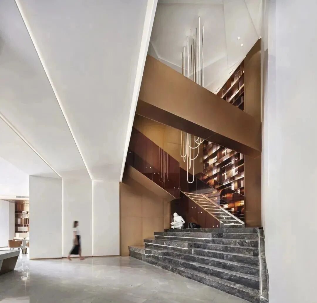 原设计踏步反光槽下口未考虑LED的反光,导致地面出现一条清晰的反射灯珠,影响整体美观效果。
