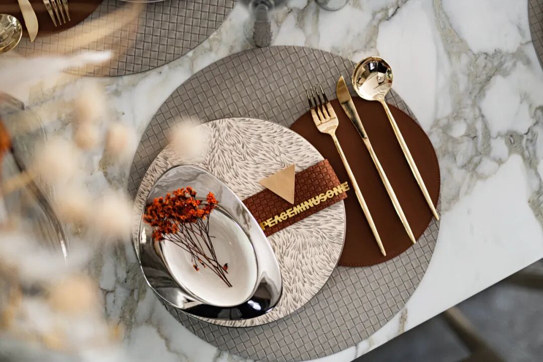 餐厅以奢雅、高级的空间氛围,打造精致的用餐环境,浅灰色的皮质餐椅,赋予视觉上的温润感受,与硬朗的大理石金属餐桌形成对比,在克制中尽显优雅,在光影之间感受居家的温暖。
