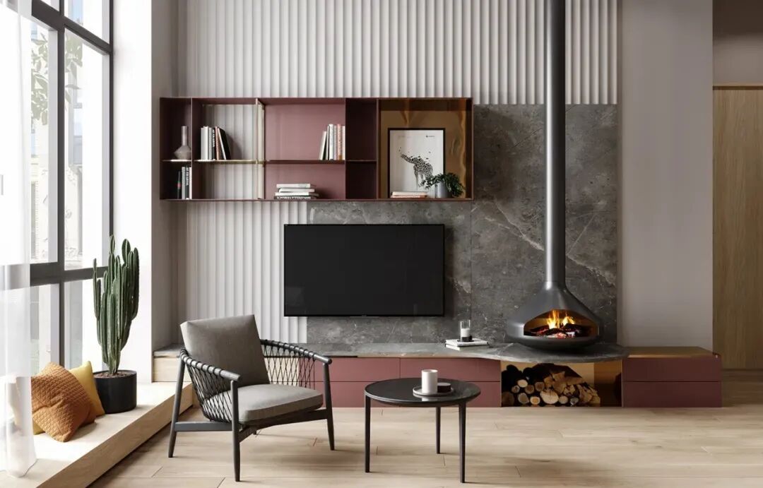 一直以来,用大理石作为电视背景墙受到了设计师的欢迎。有些人觉得这种材质看着冰冷,但是却特别适合现代简约风、新中式以及其它各种风格,并且搭配的好,效果还显得非常高档。