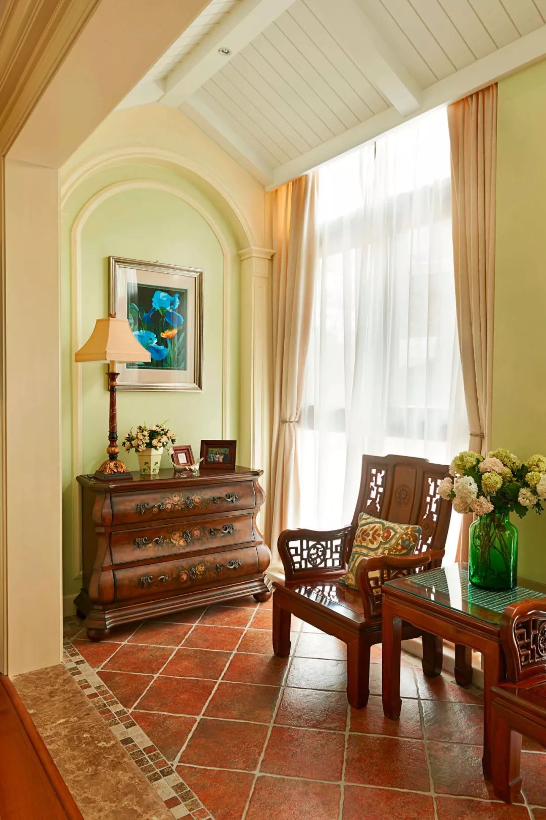 ▲这个休闲阳台选用具有古典气息的意大利IMOLA瓷砖JUPITER系列,鲜艳的色彩给我们极具艺术冲击力的空间体验和随性自由的生活方式。