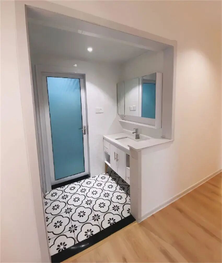 全屋通铺瓷砖,最大的一个优势是整体性强,全屋空间连贯,视觉上显大。相较于突兀的门槛石而言,颜值更高。