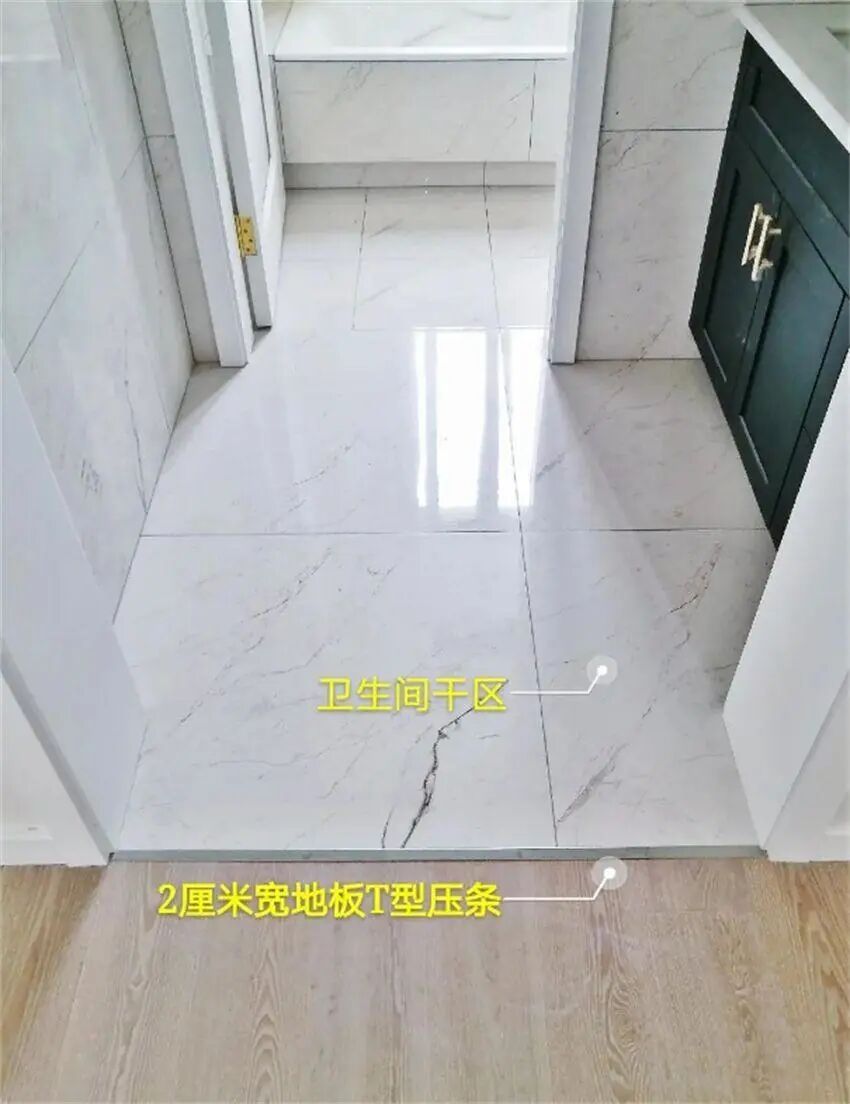 当然,如果对瓷砖通铺工艺不放心的话,仍旧可以选择加上门槛石。但要注意的一点是: