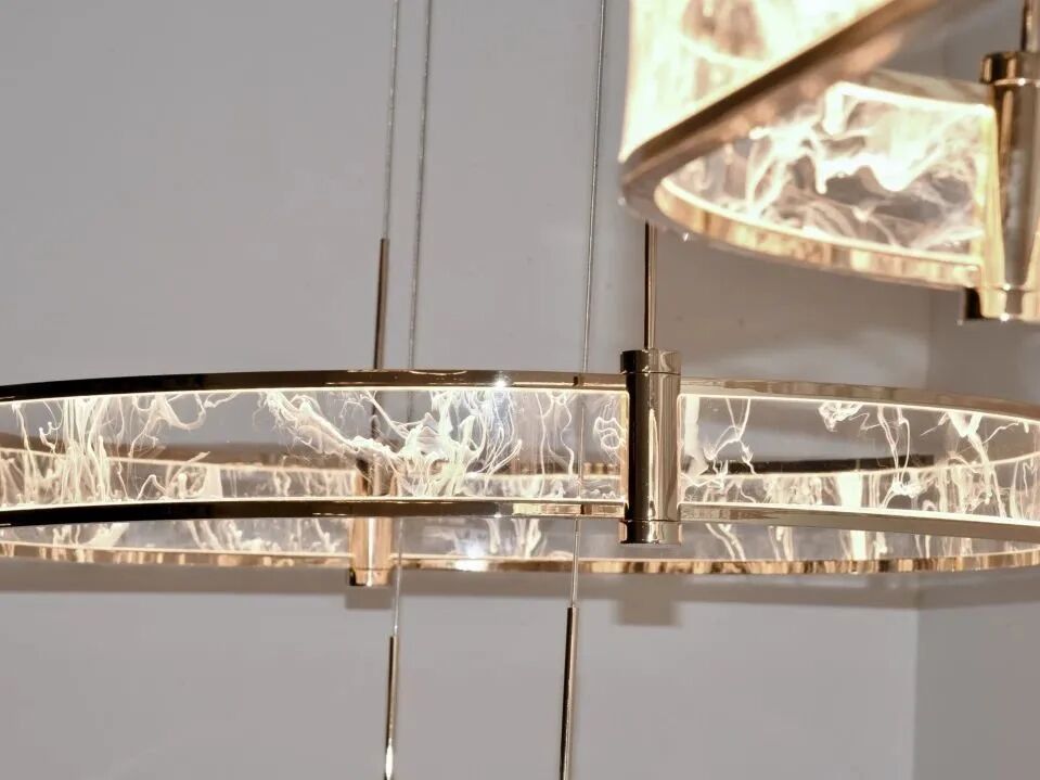 选择客厅吊灯要特别注意层高空间(不低于2.6m),否则容易导致空间显得压抑,整体装修太逼仄。一般吊灯装好后,建议要距离人的头部有30cm以上距离。