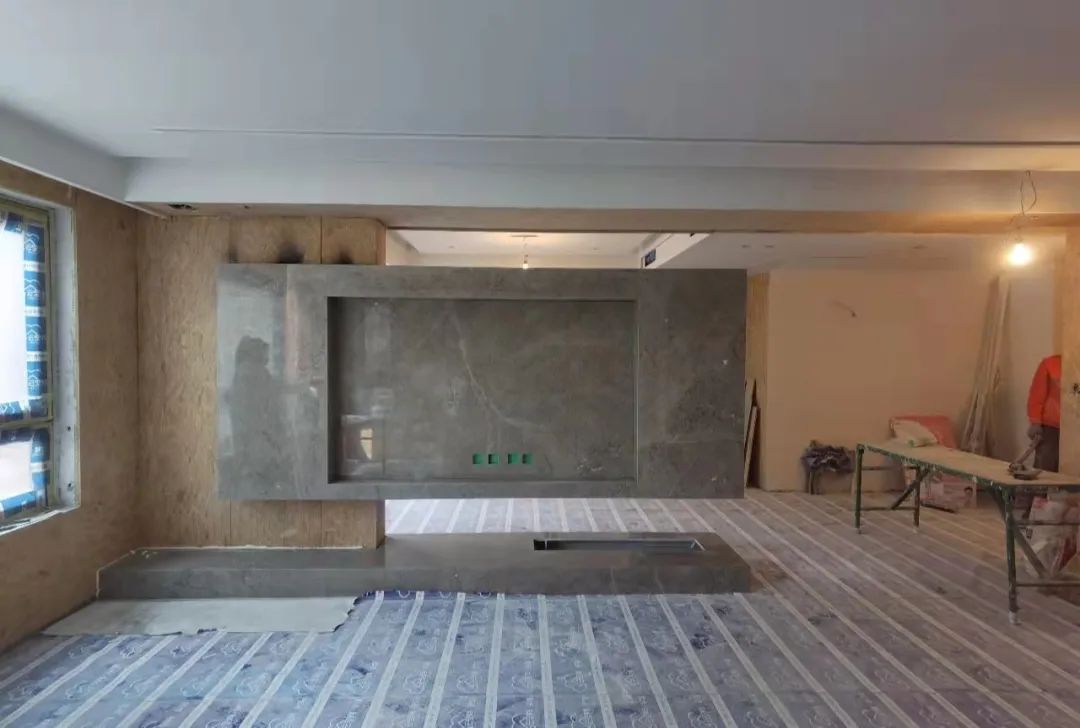 打底过程中预留插线板位置,如果想要挂壁式的电视直接铺大板,再去钻孔挂电视,如果想做嵌入式的电视,就需要提前在打木基层时,预留电视槽的位置。预留灯槽的位置,不然灯带没地方安装,悬空电视背景墙没有灯带的加持,效果会差很多。