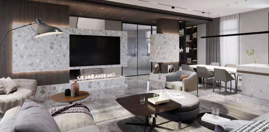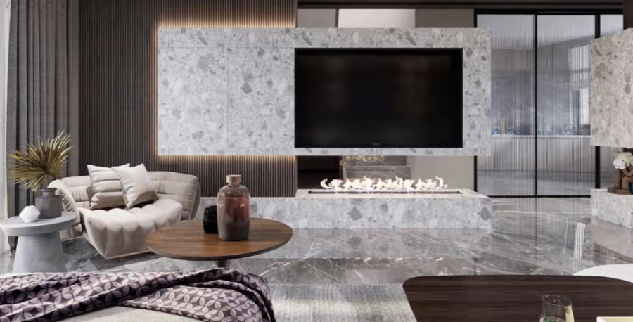 无论哪种安装方式,都需要用到AB胶来固定。在定制石材悬空背景墙前建议跟设计师沟通好要哪种安装方式,以免后期安装增加一些不必要的工序。