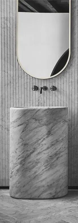 几何线条的表现方式更为多样,或柔美,或冷峻,都可以通过线条呈现在石材上。造型相比起其他纹理更为简约,极简风格和现代风格都非常适用。