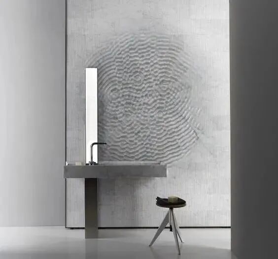 最近非常流行的水波纹也可以呈现在石材上,灵动的造型让大理石变得更富艺术感。水在风水学中象征着财运,所以水波纹肌理是应用最广泛的造型。