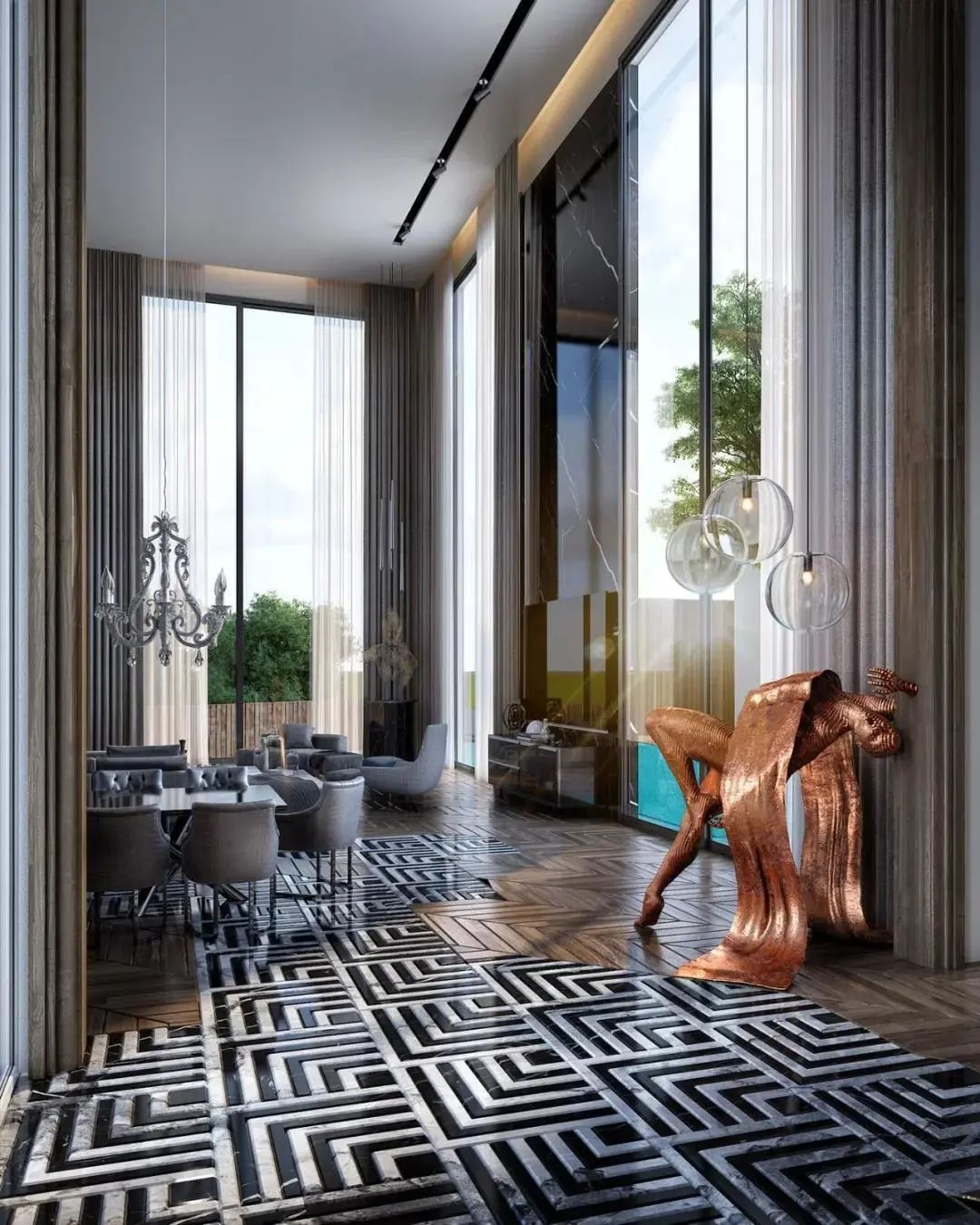 金属的高冷质感搭配大理石的温润内敛,生出一股极强的艺术张力,大理石和金属元素的巧妙镶嵌打造出轻奢感,时尚不浮夸,典雅不枯燥。