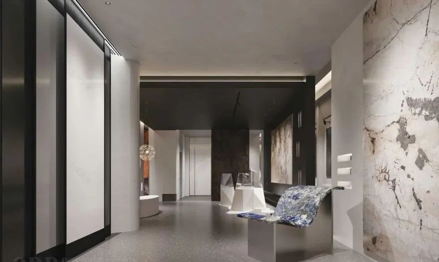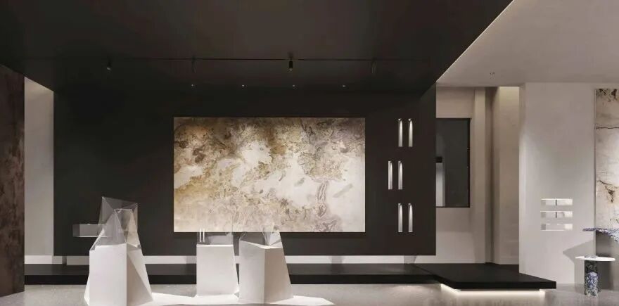 项目名称:喜盈门石博士展厅 项目地址:福建·福清 设计面积:220㎡主材应用:石材、岩板、艺术涂料
